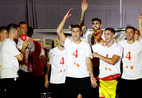 สเปน เอาชนะ อังกฤษ ในนัดชิงชนะเลิศ 2-1 เมื่อคืนวันอาทิตย์ที่ผ่านมา และจัดขบวนแห่ถ้วยยุโรปสมัยที่ 4 กลางกรุง มาดริด โดยเหล่านักเตะขึ้นเวทีไปกล่าวฉลองต่อหน้าแฟนบอลหลายหมื่นคน